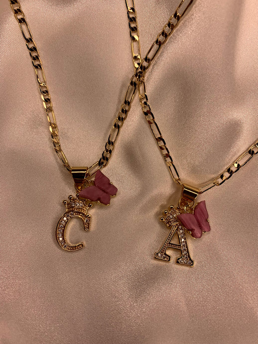Matching Best Friend Initial and Butterfly Necklace